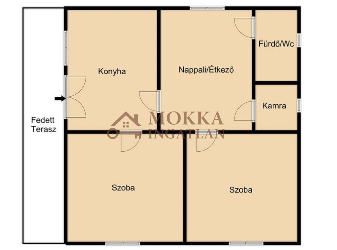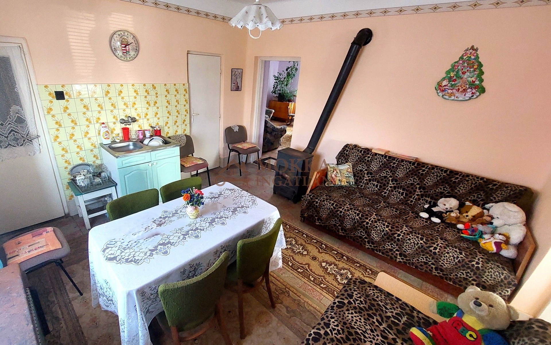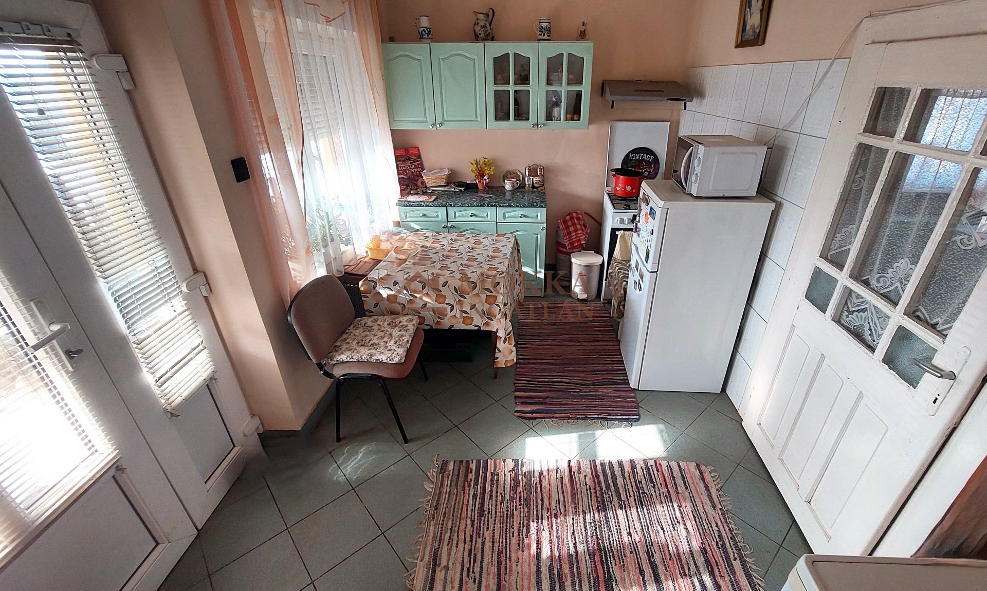 A házban két tágas szoba, egy világos konyha-étkező, fürdőszoba és kamra található. A vályog falazat és a széles betonalap garancia a tartósságra és a kiváló hőszigetelésre, amit a modern, redőnnyel és szúnyoghálóval felszerelt műanyag nyílászárók tovább erősítenek.