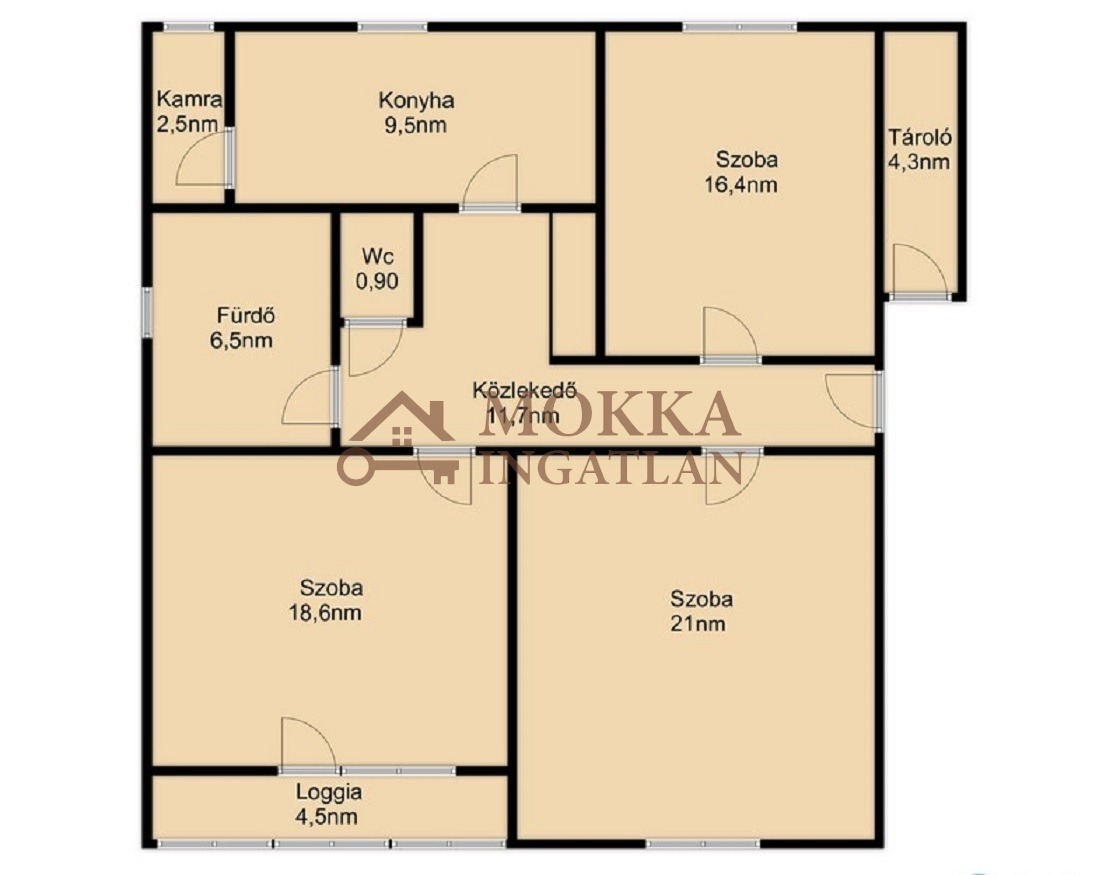 - a 96nm-es 3szoba, konyha, kamra, közlekedő elosztású,