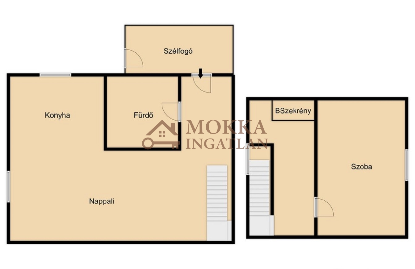 - Az ingatlanban 1szoba, nappali-konyha, fürdő-Wc, szélfogó, közlekedő elosztású.